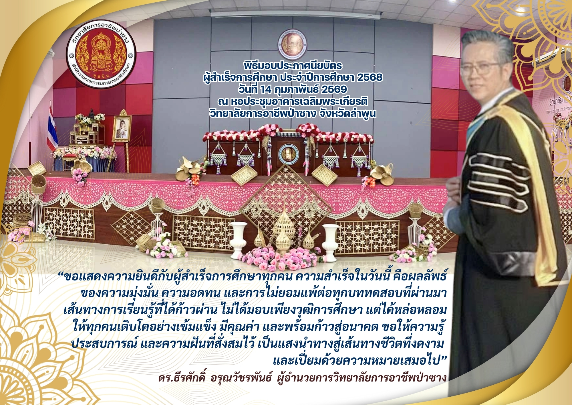 วันที่ 4 พฤศจิกายน 2566 ณ หอประชุมอาคารเฉลิมพระเกียรติ วิทยาลัยการอาชีพป่าซาง ลำพูน…